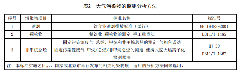餐飲業(yè)大氣污染物的分析測定應(yīng)按照表2規(guī)定的方法執(zhí)行。