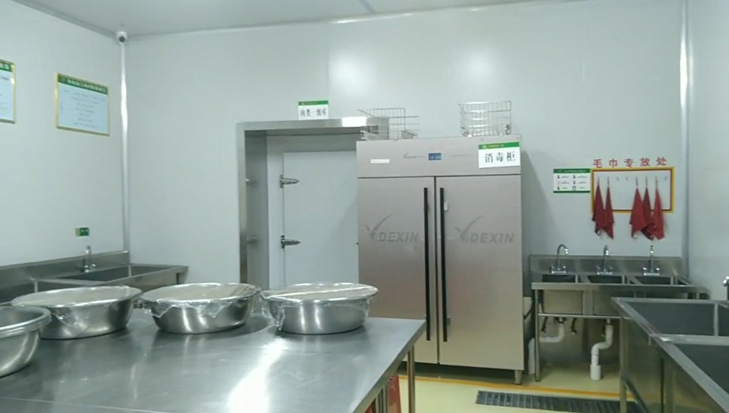 設(shè)備:?jiǎn)涡撬亍⑿屡d榮福全自動(dòng)洗箱機(jī)、洗碗機(jī)、新興榮福高溫?zé)犸L(fēng)循環(huán)消毒庫(kù)、沖地龍頭等。