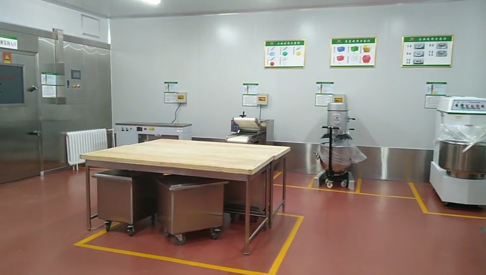 設(shè)備:雙星水池、調(diào)料柜、餅盆車、木面案板臺(tái)、面粉車、攪拌機(jī)、和面機(jī)、全自動(dòng)壓面機(jī)、面團(tuán)成型機(jī)、分離式切臺(tái)、自動(dòng)擺盤機(jī)、自動(dòng)給餡機(jī)等。油網(wǎng)煙罩、蒸箱、蒸汽發(fā)生器、油網(wǎng)煙罩、多層電焗爐、醒發(fā)庫(kù)、四層貨架等。