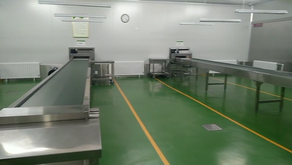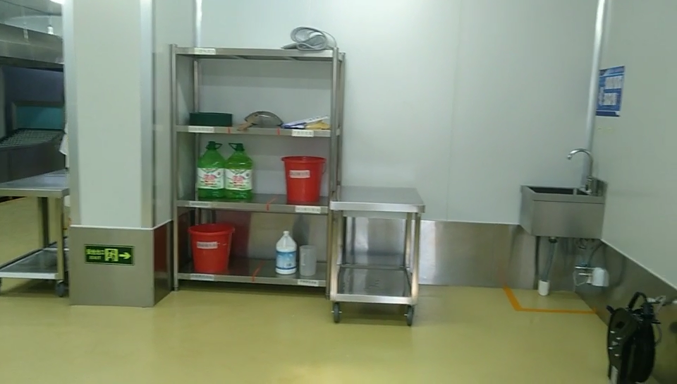 設(shè)備:新興榮福分餐線、無動(dòng)力滾軸、活動(dòng)雙層工作臺(tái)、掛墻洗手池、沖地龍頭等。
