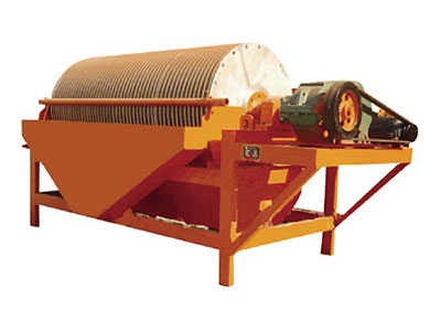 其原理是當(dāng)?shù)V漿進(jìn)入磁場(chǎng)區(qū)時(shí),其中強(qiáng)磁性礦物被吸附在圓筒表面,弱磁性和非磁性礦物被甩掉排出,而吸附在圓筒表面的強(qiáng)磁性礦物隨圓筒旋轉(zhuǎn),被帶出磁場(chǎng)區(qū),用沖洗水沖入精礦槽中,完成分選作業(yè)。